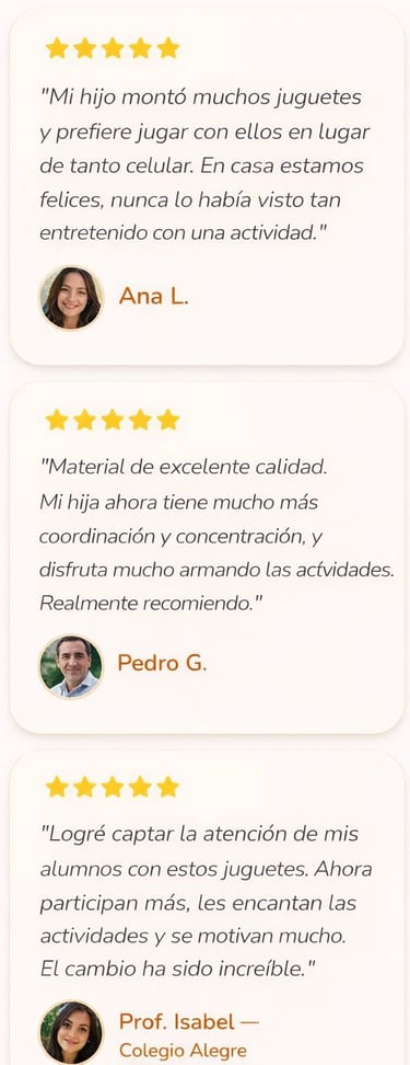 Cada actividad estimula la imaginación, la concentración y el pensamiento creativo, contribuyendo al desarrollo intelectual desde temprana edad.